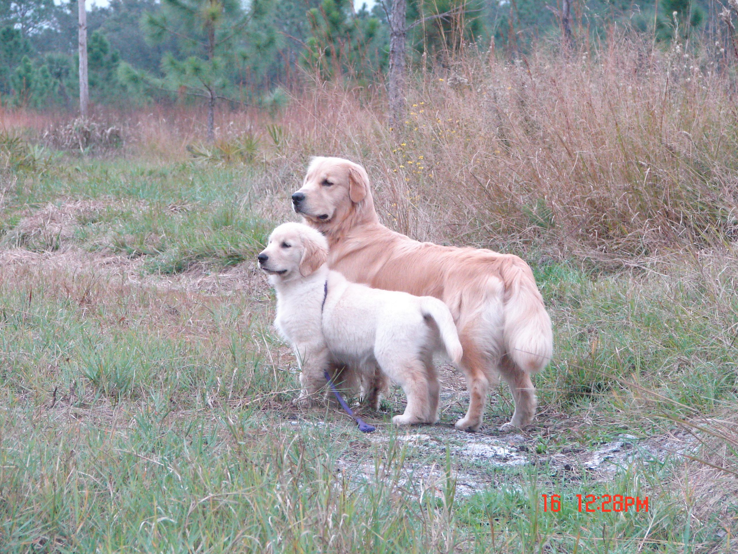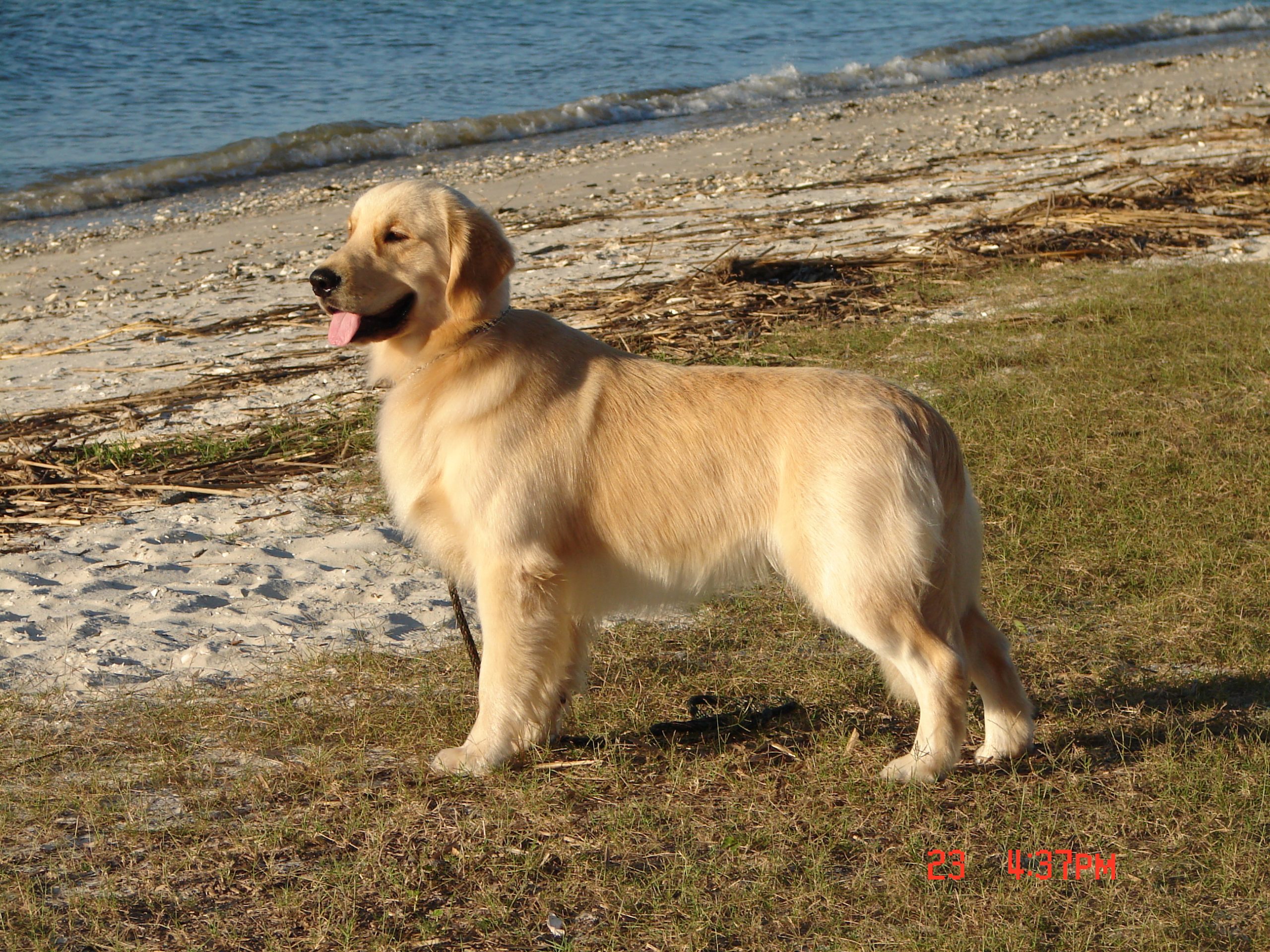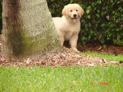 Rocky came to us from De Le Vega Golden Retrievers. De Le Vega Golden Retrievers is the combined efforts of Yvonne and Pepito Herrera, Erika Bigott, and Jane and Greg Myers. Rocky is a Simba ex Melanie puppy from their wonderful breeding program.